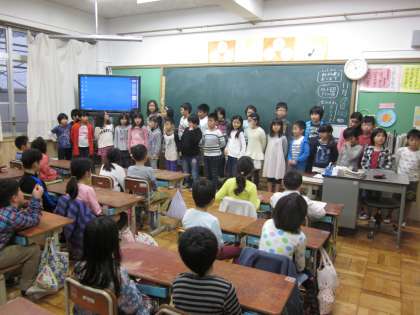 二年生は,九九を覚えている真っ最中なので,興味津々で三年生のお話を聞いていました。