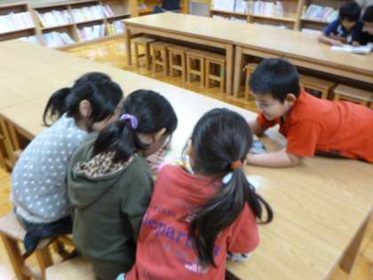 学校図書館では,友だちと仲良く読書をしていました。