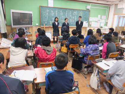 12月1日(火)に洛南中学校の生徒会の人が11日(金)に行われる洛南中学校小中交流会の案内に来てくれました。