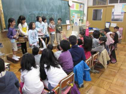 声の大きさを考えて発表できていました。