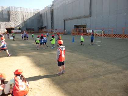 1年生は体育の時間に運動場でパスゲームの学習をしました。同じチームの人とパスを回しながらゴールを目指します。今日もたくさんの励ましの声の中,盛り上がってゲームに取り組んでいました。