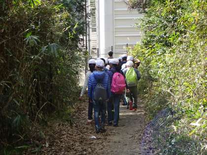 疏水沿いを歩き,山道が見えてきました。急な坂道が続く小関越です。