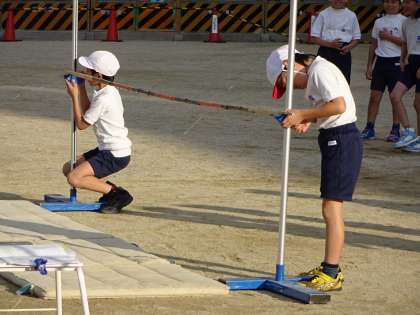 ただ飛ぶだけではなく,「どうすれば足がひっかからないのか」「助走はリズムをつけて飛ぶといい」など,友達とアドバイスをしながら協力して取り組んでいます。
