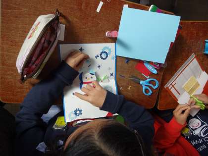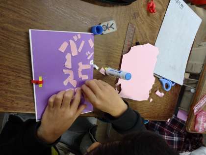 図工の学習で「飛び出すメッセージ」のカードを作っています。