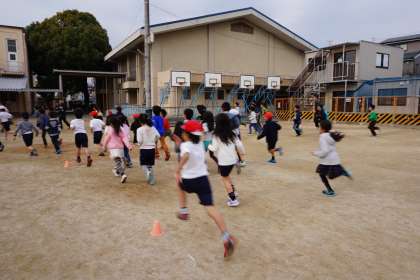 中間休みに,子どもたちは元気いっぱい走っています。