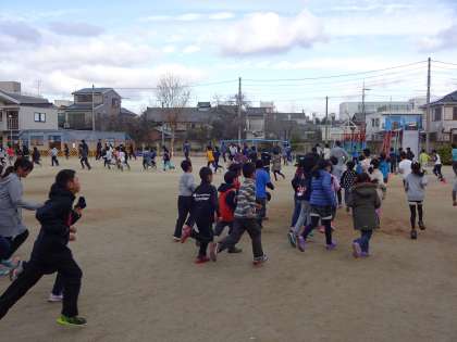 走る前は「さ〜む〜い〜!」とさけんでいる子どもたちですが,走った後は体もぽかぽかです。今日も○周走るぞ!とがんばっています。