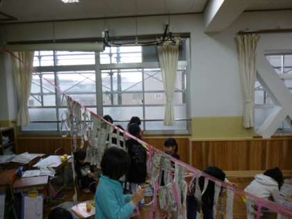 しっかりとのりでとめてとれないように工夫していました。