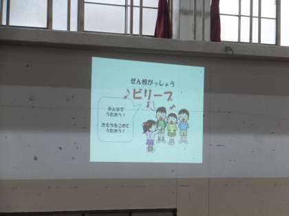 2月1日(月)朝会にて,ビリーブの全校合唱を行いました。