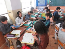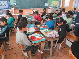 そして整理・整頓したお道具箱を友達と見せ合い,工夫したことを比べて話し合いました。