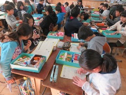 家庭「モノを生かして住みやすく」の学習で自分のお道具箱の整理・整頓をしました。