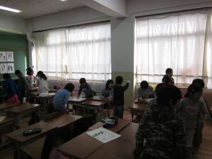その中で,韓国の遊びの一つであるユンノリという遊びをしました。
