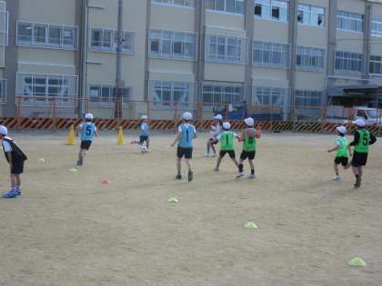 試合では動いてパスをもらうことができており,チームで協力して点が入ると子どもたちはとても喜び合っています。