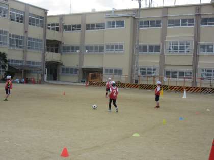サッカーは足を使うので,エンドボールなど手を使う競技に比べて,パスが難しいですが,パスの練習や,ボールを止める練習も頑張っていました。