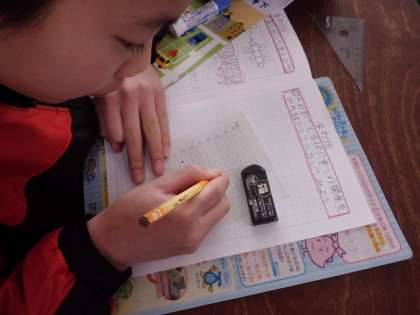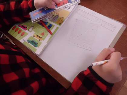 算数科では「変わり方」の学習で,2つの数字の変化を調べた表を折れ線グラフに表しました。折れ線グラフがまっすぐ伸びていることから,変わり方にはきまりがあることをより実感できたようです。