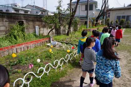 たんぽぽやチューリップ,ちょうちょなど,春の植物や生きものを見つけることができました。