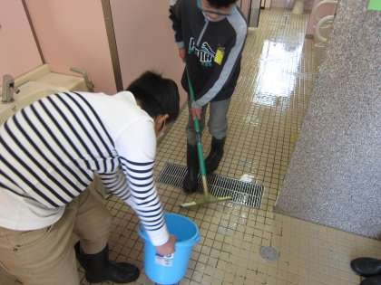 5年生からは掃除の時間に,トイレ掃除が加わります。トイレがピカピカになるように,一生けんめい取り組んでいます。