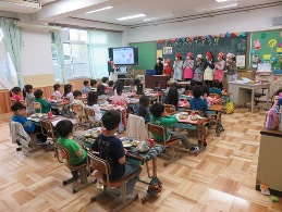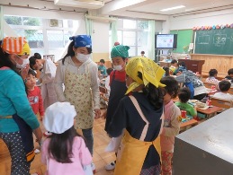 週が変わり新しいメンバーが1年生の給食と掃除のお手伝いに行きました。子ども達は1年生と仲良くなってきました。