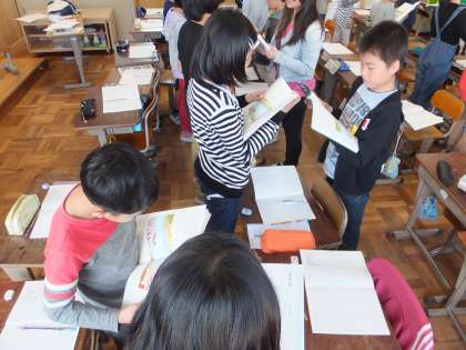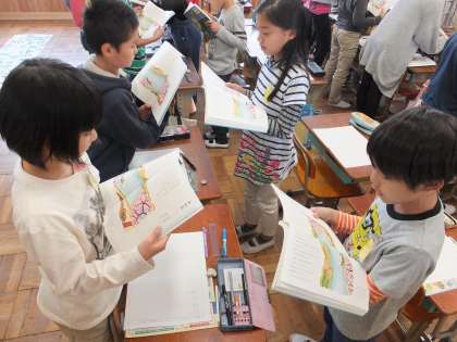 国語科の学習では,様々な形で音読に取り組みます。ペアで読んだり,全員で読んだり,一人一人が丸読みをしたりします。毎日の宿題で,すらすら読んだり,なるべく見ずに読んだり,めあてをもって取り組んでいる成果が出ている子もたくさんいます。