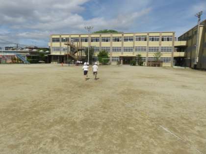 6年生全員で50メートル走をしました。2人1組で走り,子ども達は力いっぱい走りきりました。