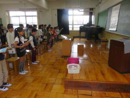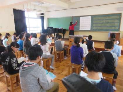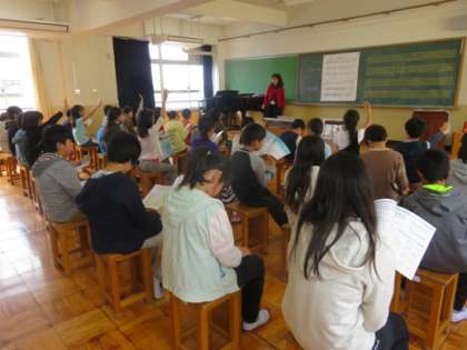 音楽の学習で二部合唱に挑戦しています。曲名は「つばさをください」です。今それぞれのパートを練習中です。
