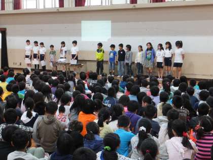 9日(月)朝会がありました。朝会では,掲示委員会からの発表,学校生活でがんばること,音楽の3つを行いました。