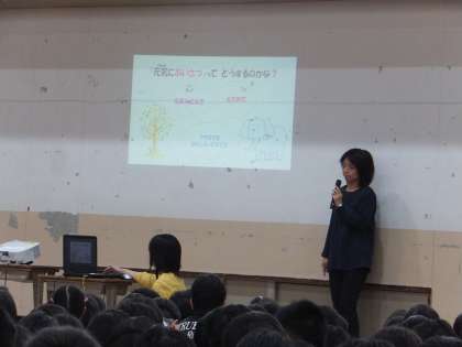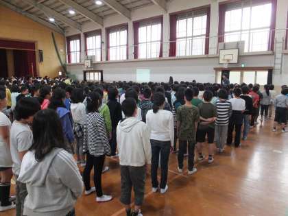 音楽では,6年生が見本として翼をくださいの合唱を聞いたあと,全校合唱でビリーブを歌いました。6年生の歌声を目指して,きれいに響かせる歌声をみんなで目指していきます。