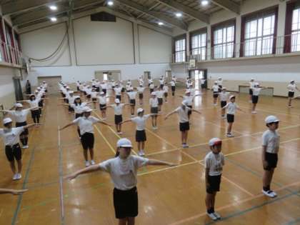 組体操の練習が始まりました。まず,一人技の練習が中心です。肩倒立やブリッジなどの技をがんばっています。