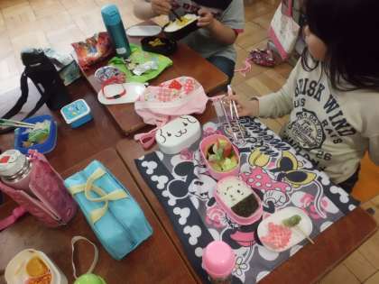 子ども達は、おうちの方が作ってくださったお弁当をとてもおいしそうに食べていました。