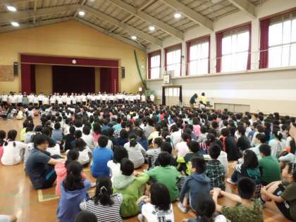 5月9日(月)に朝会がありました。今月は6年生から歌の発表がありました。きれいな歌声にぐぐっと聞き入る子どもたちでした。
