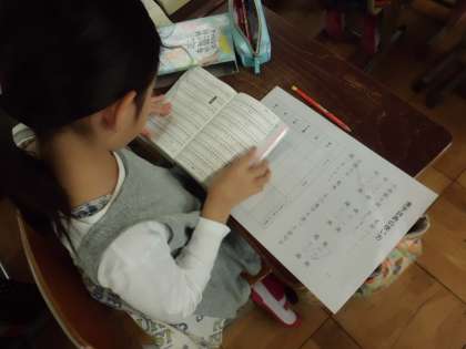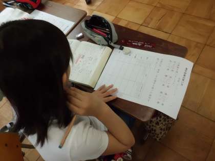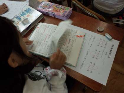 国語科では「漢字辞典の使い方」の学習をしました。漢字辞典で調べられることや引き方などを確認。音訓引きや部首引きなど,自分が調べやすい方法でいろいろな漢字の意味や語句を調べていきました。