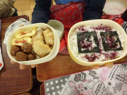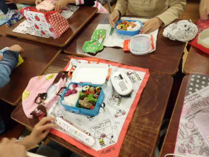 5月11日(水)は,あいにくの天候のため,遠足が延期となりました。教室の中でお弁当を食べる子どもたち。自分の好きな物がいっぱい詰まったお弁当に,いつも以上にわいわいとした雰囲気の食事時間でした。