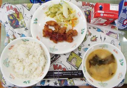 今日給食を食べてチキンカツがおいしかったです。理由はカリカリして,