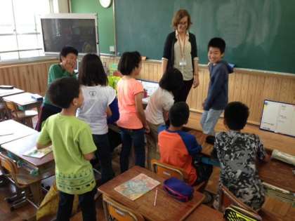 英語では,日本にはないジェスチャーがあることを知って子ども達は驚いていました。