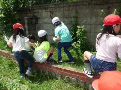 ごみゼロの取り組みで2年生は,花壇付近の草ぬきを頑張りました。