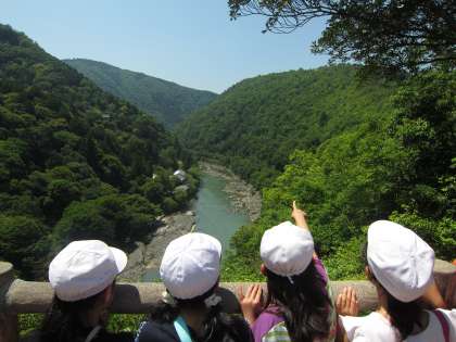 お昼ご飯を食べた後は,亀山公園にある展望台に行きました。展望台から見える美しい景色に見入っていました。