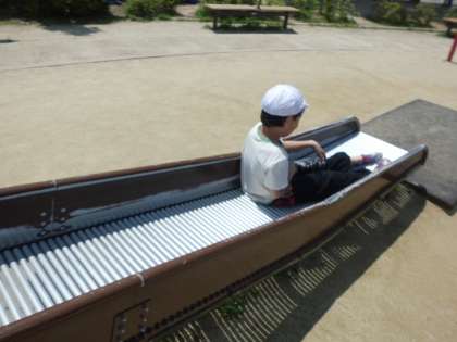 子ども達は,学校とは違う遊具がたくさんあったので,とても楽しそうに遊んでいました。すべり台が一番人気で,長い列ができていました。
