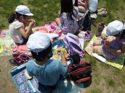 広い広場で食べるお弁当は,とても楽しそうでした。