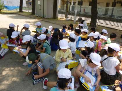 公園で水分補給や少し休憩をし,元気にたんけんできました。