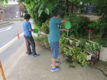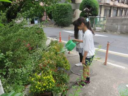 緑化委員では,校内の植物の水やりを行っています。毎週自分の担当の曜日に活動しています。校内にはたくさんの植物が生えていてきれいです。