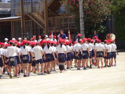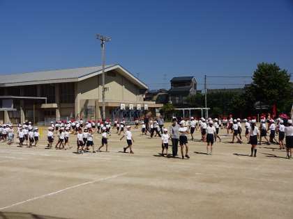 明日の運動会に向けて,1・2時間目に全校練習を行いました。