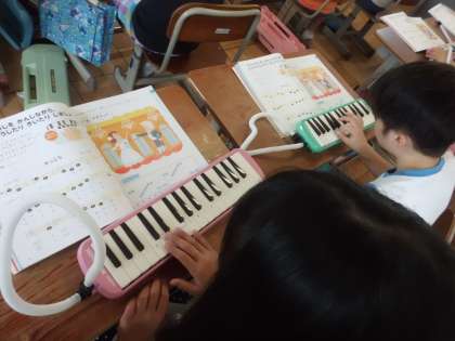 2年 音楽 けんばんハーモニカの練習