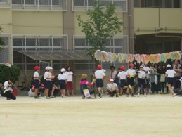 運動会当日高学年は火会活動を行い,運動会の運営をがんばっていました。