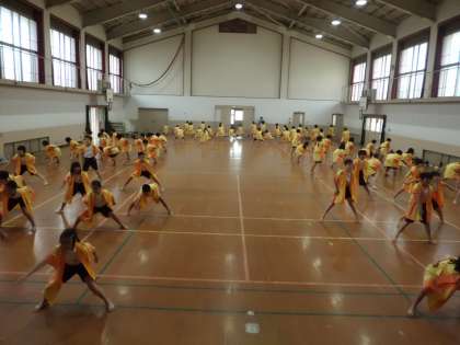運動会に向けて励んでいる体育科「表現『民謡』」。この日は初めてはっぴを着ました。ウキウキしながら袖を通す子どもたち。踊りもいつも以上に気合の入ったものになりました。