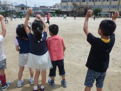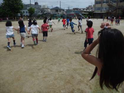 子ども達は,汗だくになりながら,クラスみんなで楽しく遊んでいました!!