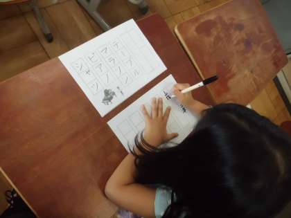 ンとソ・シとツは,似ているカタカナなので,子ども達は,お手本を見て,気をつけて丁寧に書いていました。