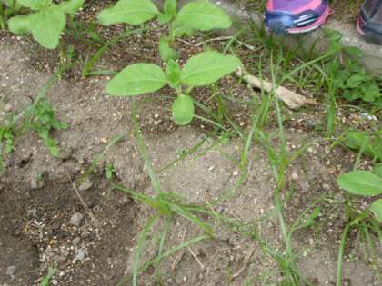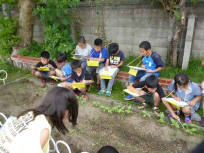 花壇に植えた種がどのように成長したのかを観察しに行きました。