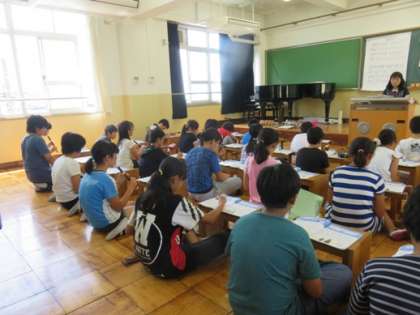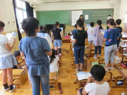 音楽の学習で,歌とリコーダーの練習をしました。ひとりずづパートを担当しリレー形式でつないで一曲を歌ったり,演奏したりしました。最後にリコーダーと歌を一緒に合わせました。
