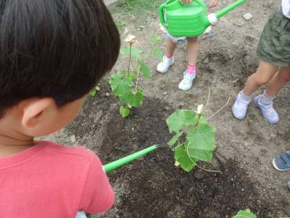 子ども達は,ミニトマトの水やりを頑張っています。これからは,2年生の畑もみんなで水やりをしていきます!!