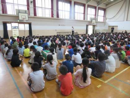 朝会で校長先生から「めじるし」についての話を聞きました。めあてをもって行動する,時間を守る。ルールを守る。真剣にするの話でした。子ども達は真剣に話を聞いていました。