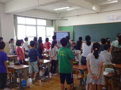 掃除後のどんどんタイムでは,各クラスで英語の歌を歌ったり,ゲームを楽しんだりしました。これからもよりたくさんの英語に親しんでほしいと思います。